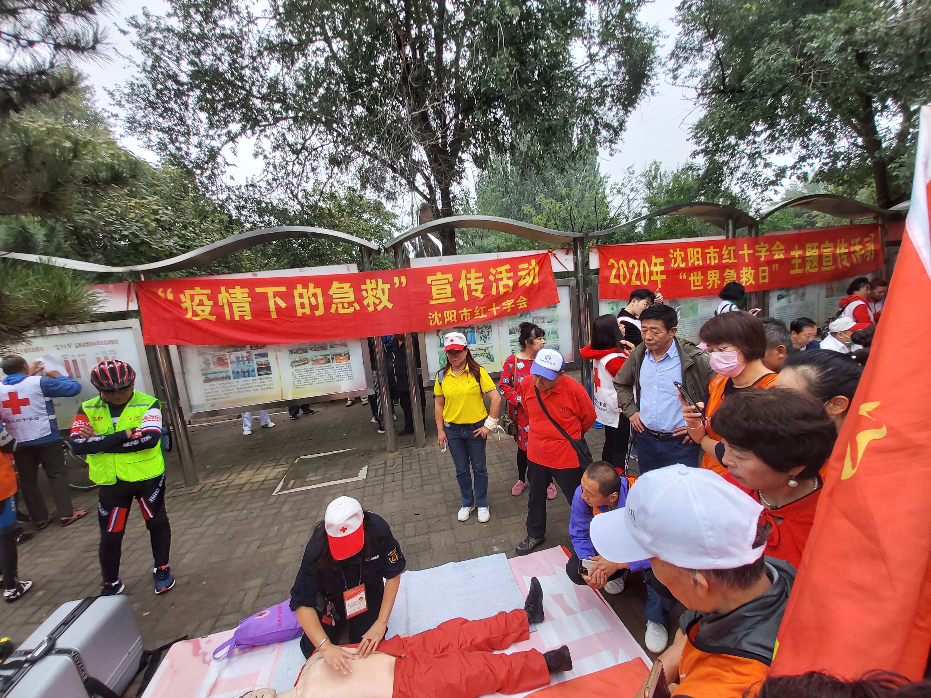 9月12日,市红十字会组织近300名志愿者在红十字志愿服务基地——铁西区劳动公园,开展了红十字应急救护知识培训等主题宣传活动。为现场的市民发放了急救宣传折页、急救手册等宣传材料,普及红十字应急救护基础知识,进行了心肺复苏、外伤包扎等知识的讲解及实际操作技能演练,并让部分市民亲身实践了自救互救技能。