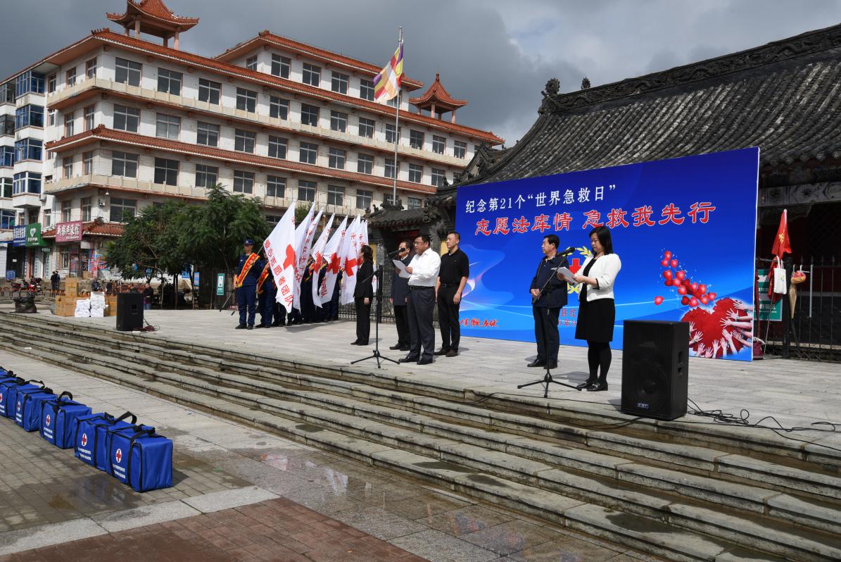 副县长兴颖杰主持活动。县委常委、宣传部部长杨少英为红十字会志愿者团队授旗。县中心医院为志愿者们进行应急救护培训。