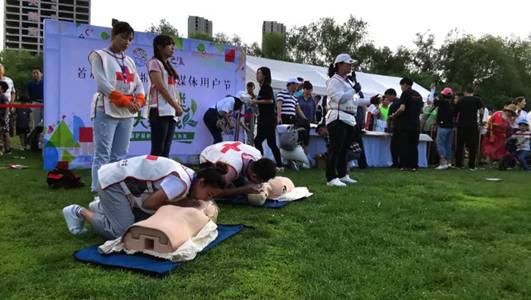 6月30日,苏家屯区红十字会志愿者服务队应沈阳日报社全媒体用户节组委会的邀请在郎朗钢琴广场为市民普及急救常识。